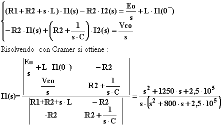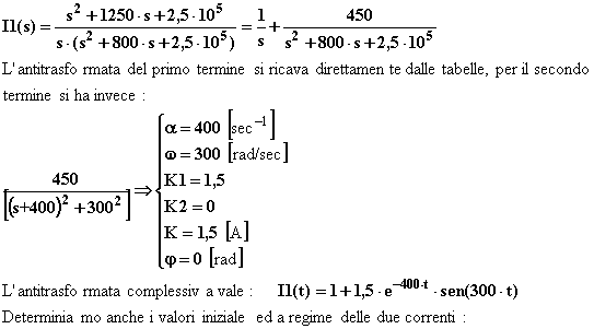 Dopo aver determinato le grandezze richieste nel dominio della frequenza complessa, per conoscerne l'andamento nel dominio del tempo si rende necessaria la loro antitrasformazione. Entrambi i denominatori presentano radici complesse coniugate, quindi entrambe le variabili conterranno termini cisoidali.