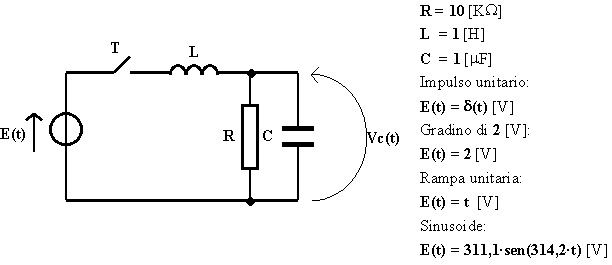 Esempio 6, rete RLC sollecitata con diversi segnali