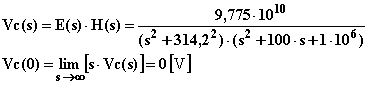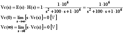 Il teorema del valore finale non è applicabile in quanto la funzione s·Vc(s) presenta a denominatore una coppia di radici immaginarie e quindi a parte reale nulla. In effetti a regime l'uscita sarà una grandezza sinusoidale e quindi sarà contenuta fra un valor massimo ed un valor minimo, oscillando tra detti valori.