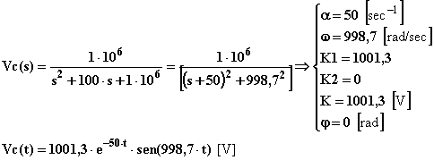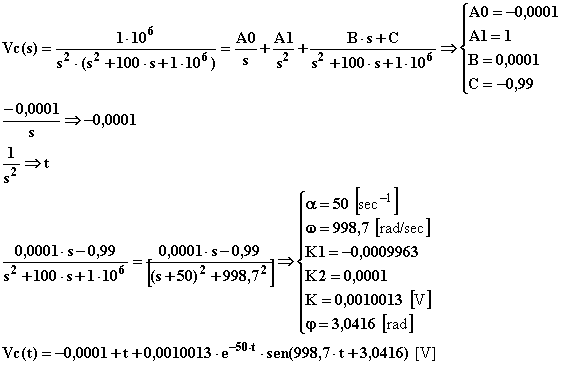 L'uscita nel dominio del tempo quando in ingresso vi è un impulso unitario si determina antitrasformando la associata Vc(s):