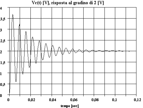 L'uscita nel dominio del tempo quando in ingresso vi è un gradino di 2 [V] si determina antitrasformando la associata Vc(s), cosa già fatta nel paragrafo relativo ai metodi di antitrasformazione:
