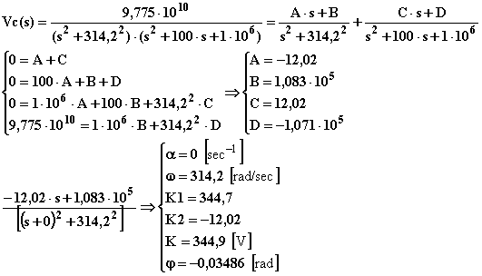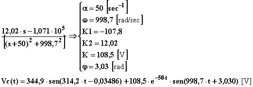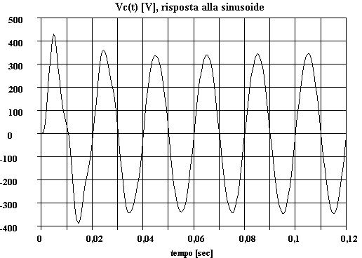 L'uscita nel dominio del tempo quando in ingresso vi è una sinusoide si determina antitrasformando la associata Vc(s):