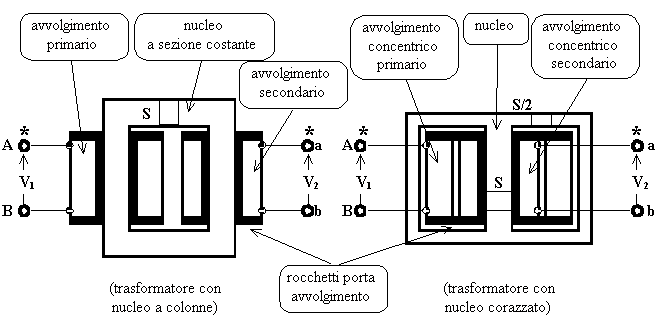 Costruttivamente il trasformatore monofase può essere realizzato nei due seguenti modi: