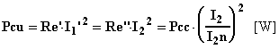 Le perdite nel rame Pcu [W] valgono Pcc (potenza assorbita nella prova in corto, riportata sulla targa) se il trasformatore ha gli avvolgimenti percorsi dalle correnti nominali, altrimenti si calcolano con: