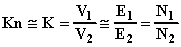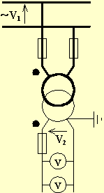 dove (Kn·V2) è la tensione al primario calcolata attraverso il prodotto della tensione secondaria per il rapporto di trasformazione nominale e V1 è la effettiva tensione primaria. Se K è l'effettivo rapporto di trasformazione sarà anche: