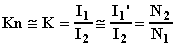 dove (Kn·I2) è la corrente al primario calcolata attraverso il prodotto della corrente secondaria per il rapporto di trasformazione nominale e I1 è la effettiva corrente primaria. Se K è l'effettivo rapporto di trasformazione sarà anche: