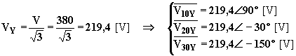Essendo il carico a stella ed equilibrato, su ciascuna impedenza è applicata la corrispondente tensione stellata del sistema simmetrico di tensioni trifasi e, quindi,: