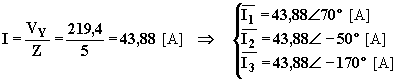Le correnti di linea, essendo il carico equilibrato, costituiranno una terna simmetrica di vettori sfasata dell’angolo j = a = 20° rispetto alla terna di tensioni stellate (inoltre, essendo le impedenze di natura ohmico-induttiva perché a > 0°, le correnti saranno in ritardo sulle tensioni stellate). L’intensità delle tre correnti è la stessa e i valori simbolici delle correnti di linea sono: