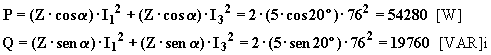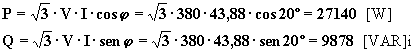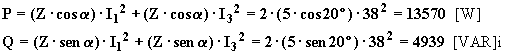 Le potenze attiva e reattiva complessive, essendo il sistema simmetrico ed equilibrato, si possono determinare con le espressioni: