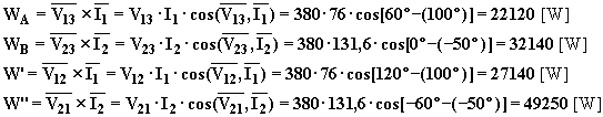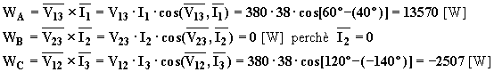 Le indicazioni dei tre wattmetri inseriti secondo Righi saranno le seguenti: