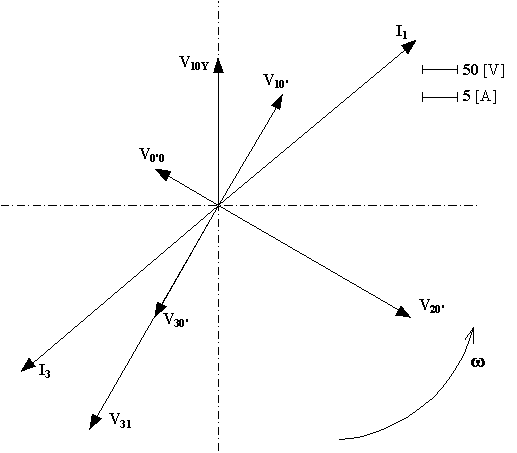 Il diagramma vettoriale sul piano di Gauss rappresentante le tensioni e correnti calcolate è il seguente:
