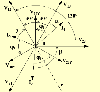 dei tre vettori rappresentanti le correnti di linea, quindi sarà