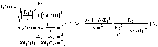 Con riferimento al circuito equivalente coi parametri del rotore riportati allo statore, la potenza meccanica generata è legata alla resistenza fittizia RM'(s) dalla relazione: