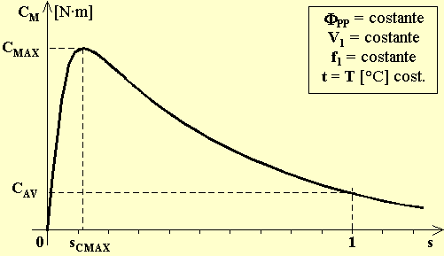 Per valori di s maggiori di sCMAX la coppia diminuisce all'aumentare dello scorrimento e tende asintoticamente al valore zero.