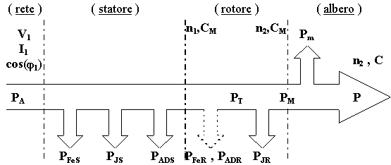 La figura sopra disegnata mostra il flusso delle potenze nel