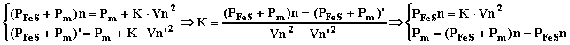 nel ferro si avranno per differenza PFeSn = (PFeS