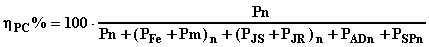 Per il calcolo del rendimento convenzionale si assume come potenza resa quella di targa Pn del motore e si risale alla potenza assorbita PA mediante la valutazione delle varie perdite Pp, per cui si avrà: