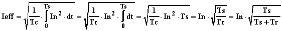 Per esempio nel caso di un servizio intermittente del tipo S3 , chiamando Tc la durata del periodo, Ts la permanenza in servizio durante il periodo, Tr la permanenza in riposo durante il periodo ( con Ts + Tr = Tc ), con In la corrente costante e pari a quella nominale presente negli avvolgimenti durante il tempo Ts, si avrà :