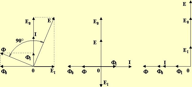 con le f.e.m. in ritardo di 90°