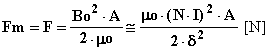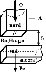 assumiamo che, grazie ad una forza esterna Fe , l'ancora subisca uno spostamento virtuale dx (ovvero talmente piccolo da non modificare i valori di induzione, campo e permeabilità nel traferro). La forza esterna compirà un lavoro dl = Fe·dx . A causa dello spostamento dx sarà pure aumentato il volume del traferro di una quantità dv = A·dx dove A è la sezione del tubo di flusso in aria. Tenendo conto che la densità di energia vale: