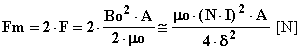 Per l'elettromagnete di destra, sempre trascurando le cadute di tensione magnetica nel ferro rispetto a quelle nel traferro si ha: