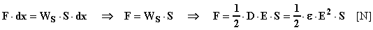 Il lavoro compiuto attraverso lo spostamento dx dell'armatura vale dL = F·dx , mentre la variazione (diminuzione) dell'energia elettrostatica vale dW = Ws·S·dx .