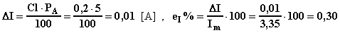 si può calcolare come potenza dissipata internamente all'amperometro oppure come caduta di tensione interna all'amperometro (nel caso lo strumento fosse stato un voltmetro, anziché calcolare la c.d.t. si deve calcolare la corrente derivata), quindi: