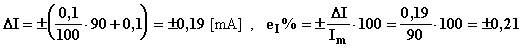 Il valore vero della corrente misurata sarà IV = (90 ± 0,19) [mA].