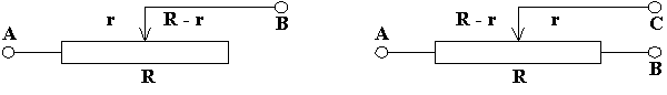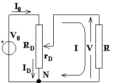 Vediamo di determinare come varia la corrente I nel circuito di misura al variare della porzione di reostato inserita, supponendo costanti RD ed R. Analizzando il circuito si ottiene:
