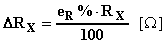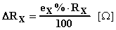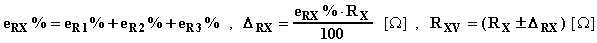 Più importante è l'errore dipendente dalla imprecisione propria delle tre resistenze campione che compongono il ponte. Se con e1%, e2%, e3% si indicano gli errori relativi percentuali delle tre resistenze, l'errore relativo percentuale che si commette nella determinazione della resistenza incognita vale:
