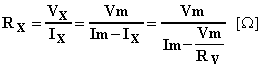 chiamata resistenza misurata. Si osserva che è Rm > RX. Per potere calcolare la vera resistenza incognita bisogna eseguire: