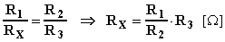 Poiché in tali condizioni i punti B e D vengono a trovarsi allo stesso potenziale, la caduta di tensione che si ha nella resistenza R1 eguaglia esattamente la caduta che si ha nella resistenza R2, e risulta quindi: