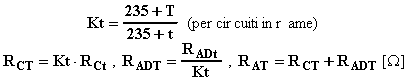Se si desidera trasportare le resistenze dalla temperatura di prova t [°C] ad una temperatura diversa T [°C], basta operare come segue :