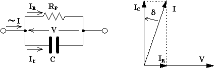 I condensatori, oltre alla capacità, presentano pure parametri parassiti quali resistenza ed induttanza. La resistenza parassita tiene conto delle perdite di potenza dovute alla resistenza equivalente d'isolamento (idealmente infinita) tra le armature, delle perdite dielettriche, delle perdite dovute alla resistenza ohmica delle armature stesse. L'induttanza parassita è invece del tutto trascurabile considerando le frequenze di impiego in elettrotecnica. In conclusione il modello di un condensatore può essere rappresentato col seguente circuito equivalente parallelo :