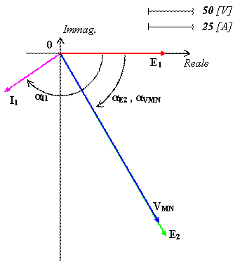 Il diagramma vettoriale riguardante le tensioni e le correnti nella rete studiata è il seguente: