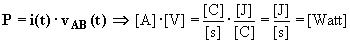 Potenza elettrica : è, in un certo istante t e con riferimento ad un bipolo di morsetti A e B , il prodotto tra i valori istantanei della corrente i(t) entrante nel morsetto A del bipolo e della tensione vAB(t) presente tra i capi A e B del bipolo: