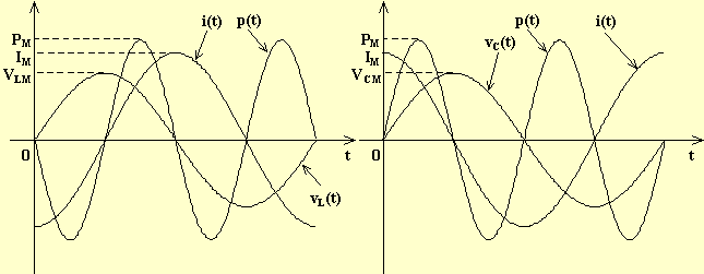 Questo stato di regime si verifica in un circuito puramente induttivo (corrente in ritardo di 90° sulla tensione), oppure puramente capacitivo (corrente in anticipo di 90° sulla tensione). Eseguendo per ogni istante il prodotto v(t)·i(t) si ottiene p(t) che è una grandezza ancora sinusoidale di frequenza doppia rispetto alla corrente ed alla tensione. Si osserva che l'asse di simmetria della p(t) coincide con l'asse dei tempi (ascissa) e, quindi, la potenza non ha più carattere pulsante ma ha carattere alternativo e conseguentemente il suo valor medio è nullo.