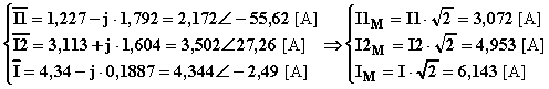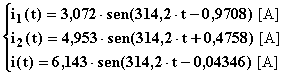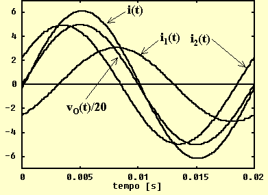 L'espressione ai valori istantanei delle tre correnti vale (con gli argomenti iniziali espressi in radianti per omogeneità con le pulsazioni in [rad/s] ):